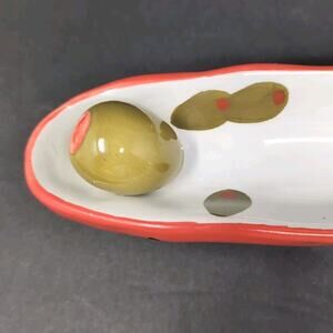 Bella Casa By Ganz Olive Boat Tray Server Ceramic Dish Appetizer Charcuterie