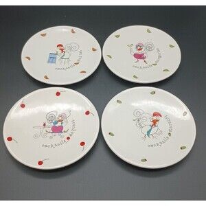 Bella Casa By Ganz Tipsy Chicken Cocktail Plates Mai Tai Daquari Martini. Some plates have severe crazing. Some have none. No chips or cracks.