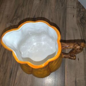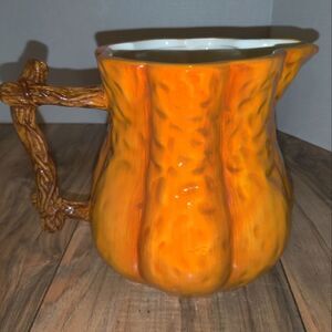 Bella Casa By Ganz Ceramic Pumpkin Fall Style Pitcher 7'in Tall. Has some wear from age and storage. Sold as is.