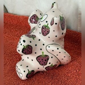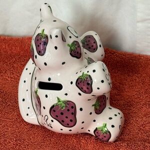 Bella Casa by Ganz 'MEOWBERRY' Kitty Cat Piggy Bank EUC Pink & purple Strawberry