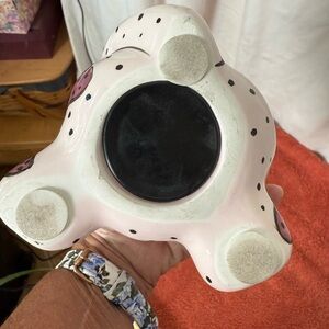 This charming Bella Casa by Ganz 'MEOWBERRY' Kitty Cat Piggy Bank is a delightful addition to any collection of decorative collectibles. The pink and purple Strawberry design adds a playful touch to this functional piece, making it a great gift for cat lovers or a fun way to save your spare change. The excellent used condition ensures that it has been well-maintained and will make a great addition to your home decor.