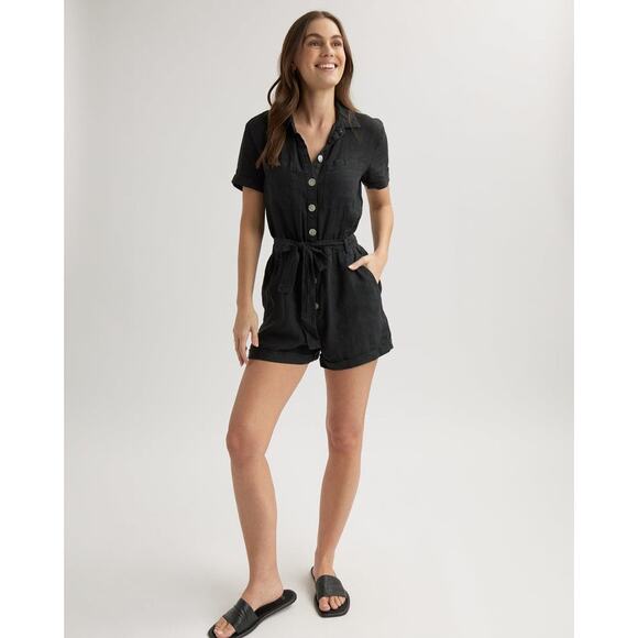 Keywords: Linen, breathable, lightweight, beachy, natural, airy, textured, eco-friendly, relaxed, casual, soft, loose-fitting, cute, summer, jumpsuit, shorts