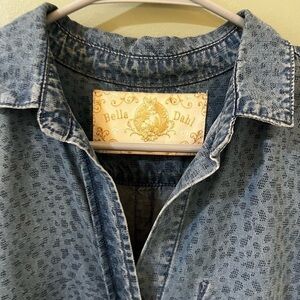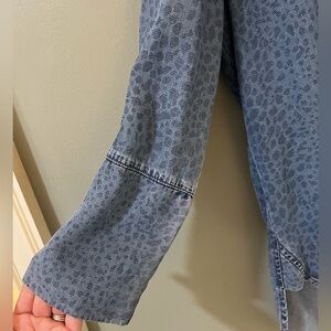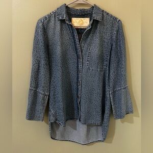 Bella Dahl Animal Print Shirt Tail Chambray Button Down Shirt Flare Sleeve extra small casual excellent condition