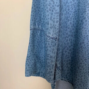 Bella Dahl Anthro Chambray Cheetah Button Up High Low Top size XS