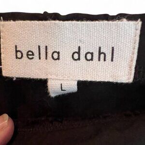 Effortless and versatile Bella Dahl black midi skirt in size L. Minimalist slip style with a fluid drape and soft hand feel — perfect for pairing with sweaters, tanks, or blouses year-round.