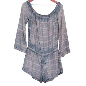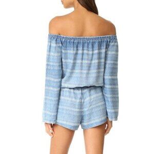 Bella Dahl Blue Chambray Tiki Stripe Off Shoulder Long Sleeve Romper Size Medium