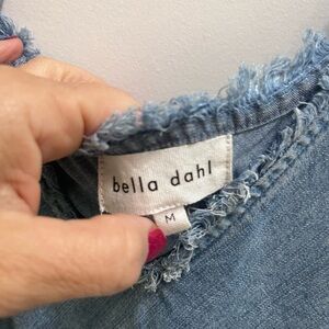 Chic sleeveless top with frayed trim. Ideal for relaxed outings.