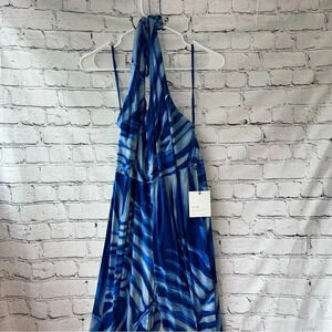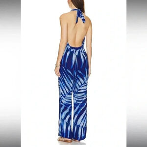 Bella Dahl Blue Palm Open Back Halter Jumpsuit Size Medium Brand New