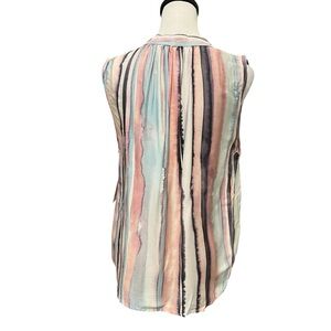 Bella Dahl Button Down Tank Coastal Stripe Blouse Pastel Pink Blue Purple M NWT