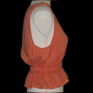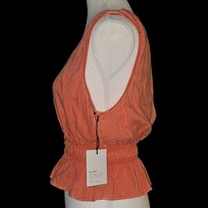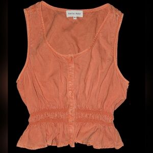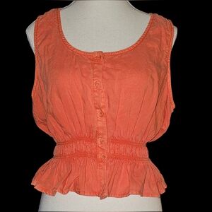Bella Dahl Coral Smocked Peplum Tank Top NWT Button Boho Summer Sz M
