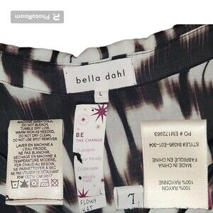 "Bella Dahl Flowy Button Down Blurred Ikat Print, this flowy button down features a unique black and white blurred ikat print. This top is surely eye-catching and versatile. You can wear this shirt from the office to dinner or wear it casually with jeans and sandals. Either way this bold print will become a go-to and it will make you stand out in style!