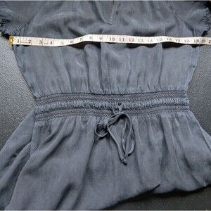 Bella Dahl Frayed Smocked-Waist Dress Lightweight Tencel Boho Fringe Medium