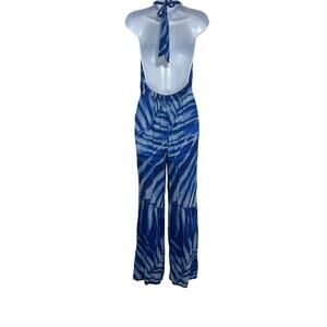 Bella Dahl Womens Size XS Halter Style Jumpsuit Blue Print Low Back Flowy Boho Indie Tropical NWT Resort Vacation Chic Trendy Wide Leg Summer Beach Glam