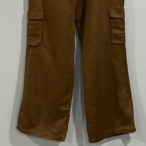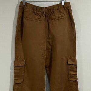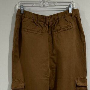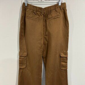 Effortless styles you'll love to live in. Pleated Wide Leg Linen-Blend Pant in topaz brown with elasticized back waist, cargo pockets, and four-pocket styling Inseam approximately 32in; 12in rise Model is 5'9 and is wearing a size small. Measurements may vary slightly by size. Zip fly with button closure 54% linen, 46% tencel lyocell Machine wash Imported