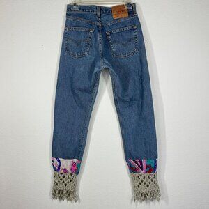 Bella Dahl Levi’s 501 Jeans 28 Crochet Silk Detail Button Fly Medium Wash