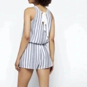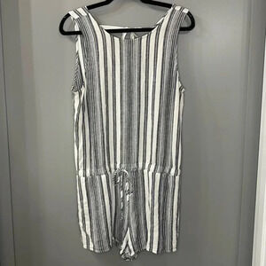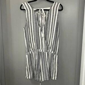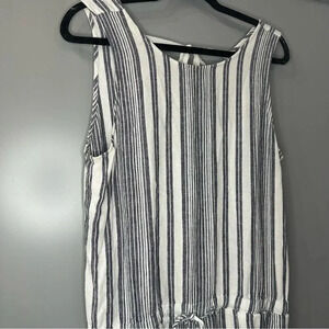 Bella Dahl Linen Blend Tie Back Striped Sleeveless Crossback Romper Grey White L