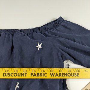 Bella Dahl Navy Star Print Frayed Off Shoulder Blouse Size M NWT