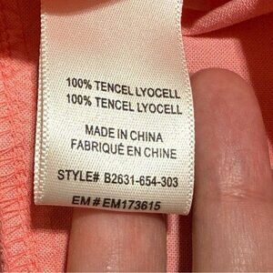 Fall in love with this ultra-soft Bella Dahl button-down shirt in a beautiful coral-pink shade. Made from 100% Tencel Lyocell, this top features a relaxed fit, dual front pockets, long roll-tab sleeves, and a high-low hem with a back slit. Lightweight and breathable — perfect for spring and summer or layered year-round.