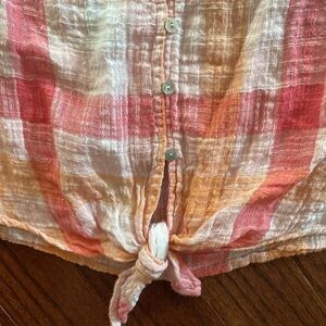 Bella Dahl Pink plaid Sleeveless Tie Front Tank Top