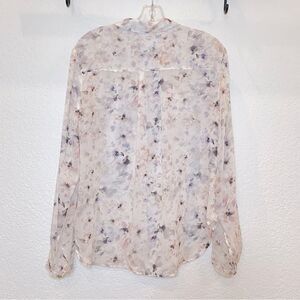 Bella Dahl Relaxed Hipster Sheer Floral Button Down in White/Purple/Pink size M