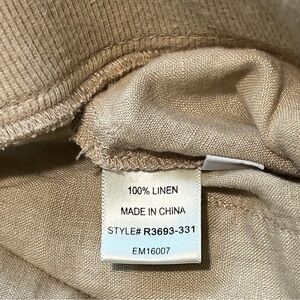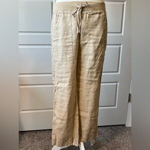 Bella Dahl SM Women’s Tan Linen Stretch Waist Wide-Leg Pants w Pockets