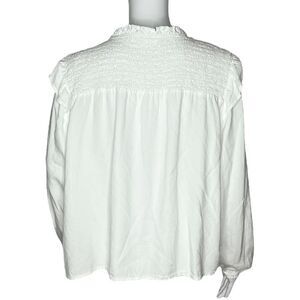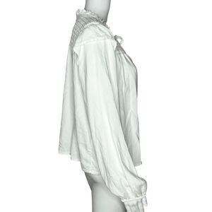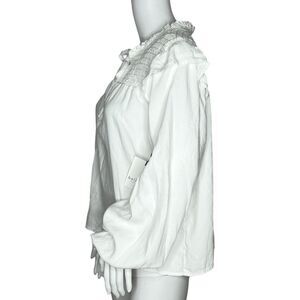 Bella Dahl Shirt Women Medium White Smocked Ruffle Pullover Neutral Boho Peasant