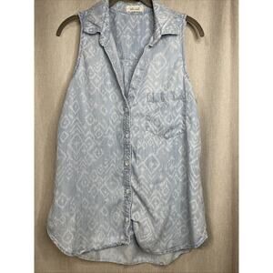 Bella Dahl Sleeveless Blouse Women’s Sz Large Aztec Western Chambray Button Down