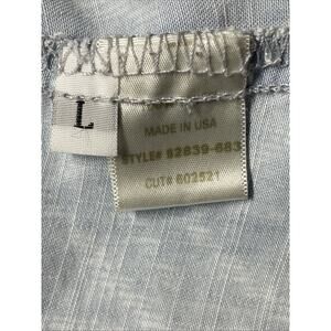 Measures 20” P2P and 25” long approximately. The Bella Dahl Sleeveless Blouse in women's size large is a stylish and versatile piece perfect for casual occasions. This chambray button-down blouse features a Western-inspired pattern, collared neckline, and sleeveless design for a trendy look. Made from Tencel, it is machine washable and easy to care for. The blouse also includes accents such as button closures and pockets, adding to its functionality and charm. Ideal for all seasons, this Bella Dahl top exudes a bohemian vibe with a touch of Western flair.