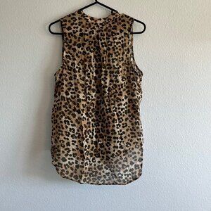 Bella Dahl Sleeveless Button Down Leopard Print Blouse High Low Size Small