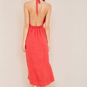 Bella Dahl Smocked Waist Halter Midi Dress in Azaleza NWOT