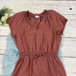 Bella Dahl Smocked Waist Raw Hem Rust Tencel Mini Dress. This dress is in great used condition