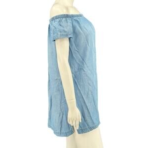 Bella Dahl Top Womens XS Blue Chambray Tunic Off the Shoulder Tencel Lyocell Short Sleeves Pullover Shift Beach Summer Casual Travel Made in USA Festival