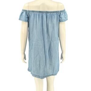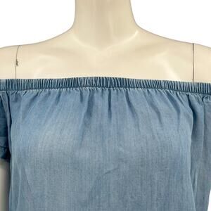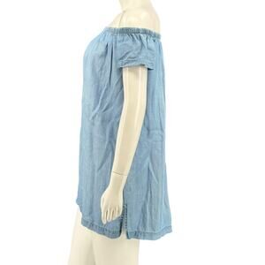 Bella Dahl Top Women XS Blue Chambray Tunic Off the Shoulder Tencel Summer Beach