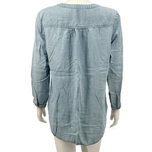 Bella Dahl Top Womens Medium Blue Chambray Tencel V-Neck Autumn Country Western