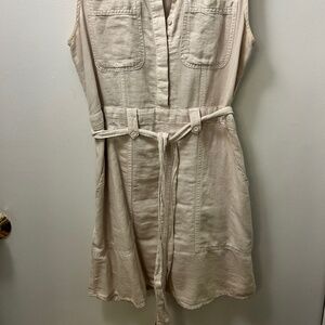 Lightly worn dress. Can fit XS - S. Very comfortable. Features a button-down front, long sleeves, and utility pocket with a tie around the waist. In color "Moonlit Haze"