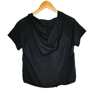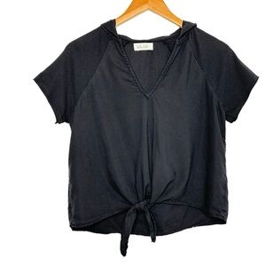 Bella Dahl Womens Hooded Tie Front Short Sleeve Crop Top Blouse Sz Small Black