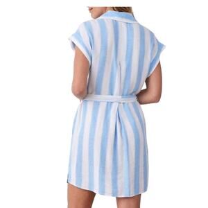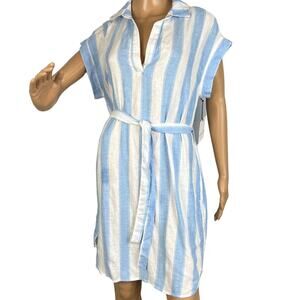 Bella Dahl Women’s Marina Dress Linen Blend Blue White Stripe Size M NWT