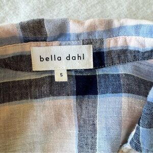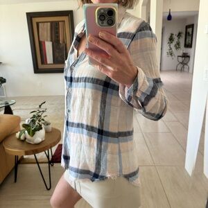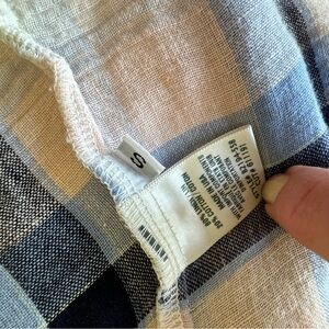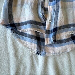 Bella Dahl Womens Shirt Frayed Hem Blue Plaid Long Sleeves Linen Cotton Blend S