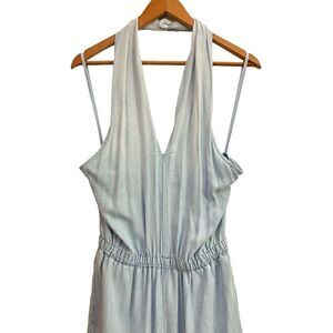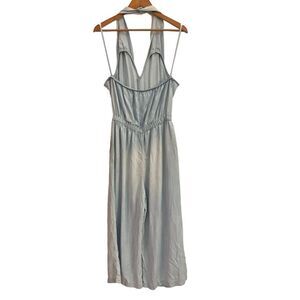 Bella Dahl Women’s Denim Halter Wide Cropped Leg Relaxed Jumpsuit with Pockets M