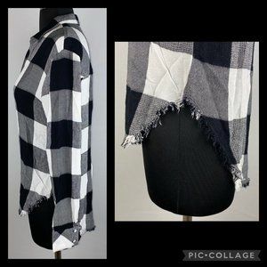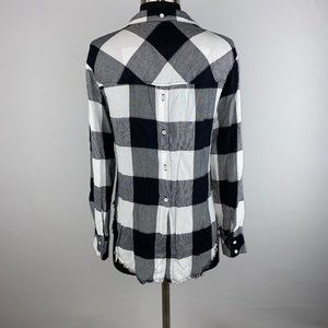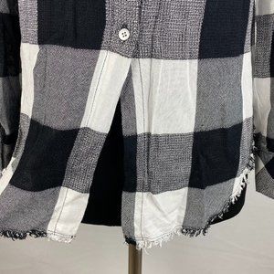 Bella Dahl XS Plaid Collared Button Up Front & Back Hi-Lo Fringe Hem Top.