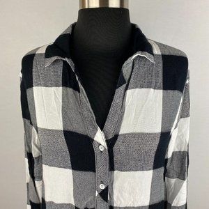 Bella Dahl XS Plaid Collared Button Up Front & Back Hi-Lo Fringe Hem Top