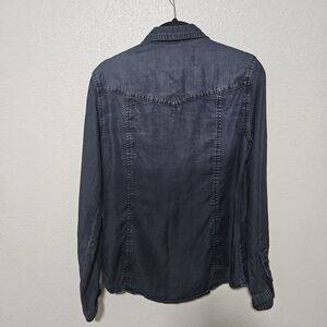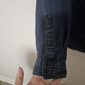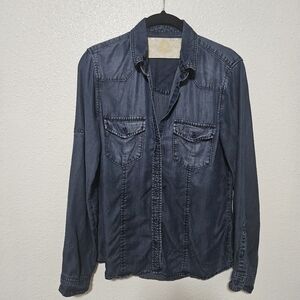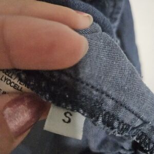 Bella Dahl chambray button down vneck top size small see pics for verification of size used no holes or stains measurements approximately flat lay pit to pit 18 length 27 sleeve 25
