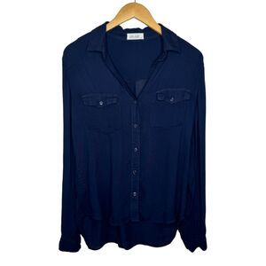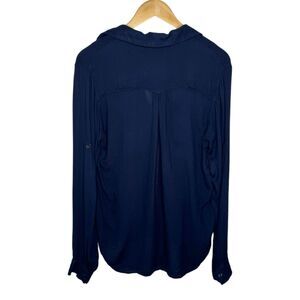 DETAILS: 100% rayon; soft fabric; button down with v-neckline; collared; double chest pockets; roll tab sleeves; flowy silhouette
