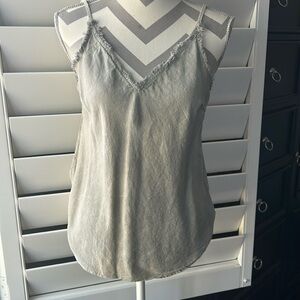 Size small, Bella Daly frayed cami in moss green. Adjustable straps in the back.