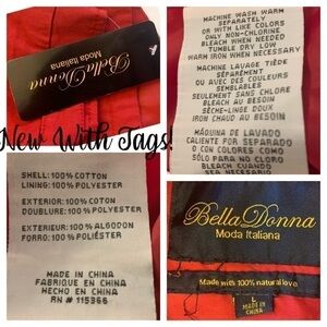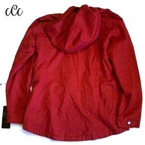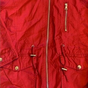 This is a gorgeous everyday jacket in noticeable but subdued red! I love red jackets! This is a light weight red jacket with soft 100% cotton and lined inside and stylish zippered pockets. Brand new with tags! There is one unraveled strand from the button tassel (see last picture). Sure to be a favorite light weight jacket!