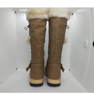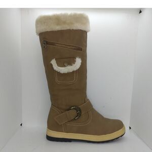 Bella Hannna Designer Womens Knee High Faux Fur Lined Tan Zipper Boots w/Pockets