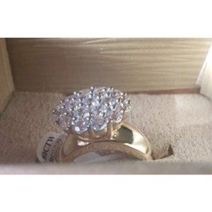 This listing is for Cubic Zirconia 18k Yellow Gold Over Silver Ring 3.80ctw - 20 individual stones). Beautiful sparkle, definitely an eye-catching piece to add to your collection or great for a gift. Setting is pronged with a circular -gemstone design.