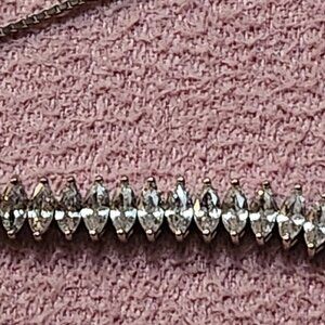 Bella Luce 8.88 CTW marquise bracelet in rhodium over sterling silver (5.18 CTW DEW). This adjustable bracelet was purchased from JTV in 2017. It has been worn only a couple of times and stored in a jewelry box, so it still looks new. #BellaLuce #SterlingSilver #MarquiseBracelet #Rhodium #FineJewelry
