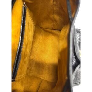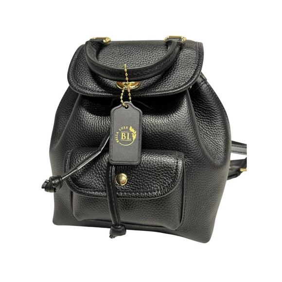 Bella Luer Black Pebble Leather Drawstring/Clasp Closure Small Backpack Bag