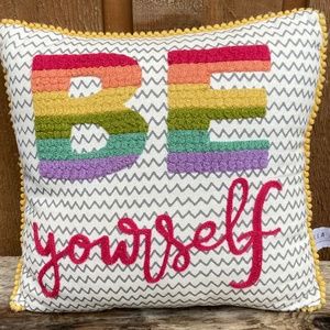 Bella Lux BE YOURSELF decorative embroidered rainbow throw pillow